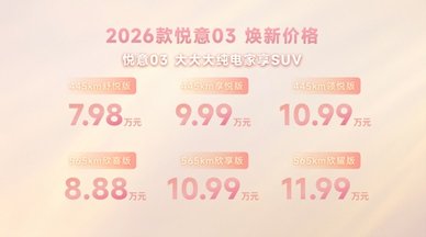 2026款悦意03 上市:配置升级, 7.98万起售