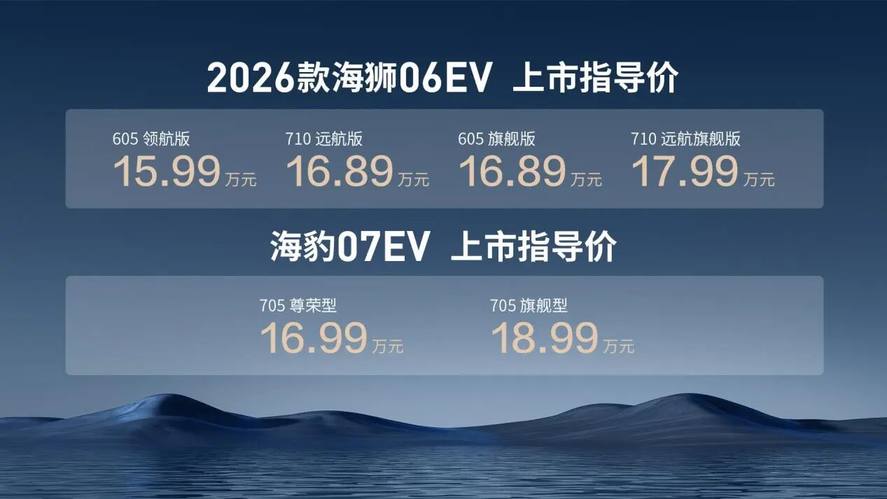 其中,2026款海狮06EV官方指导价为15.99万元-17.99万元,并推出实力焕新礼、实力无忧礼、实力闪充礼、实力智联礼多重购车礼遇;海豹07EV官方指导价为16.99万元-18.99万元,即日起,用户可享出众金融礼、出众焕新礼、出众智联礼、出众守护礼、出众闪充礼多项购车礼遇。
