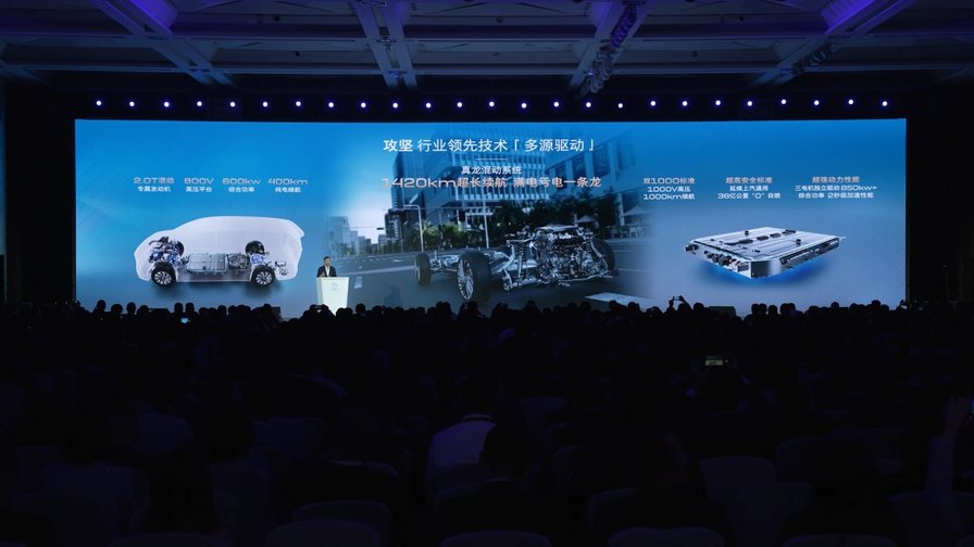 而在纯电领域,下一代电池系统瞄准“双1000”标准——即1000伏高压充电与1000公里纯电续航,并兼容未来固态电池技术;全新分布式电驱系统综合功率最大支持850千瓦,零百加速进入2秒级别,全面碾压行业平均水平。