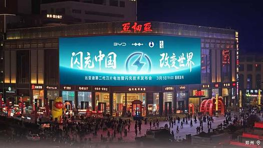 没有繁复的参数堆砌,“闪充中国,改变世界”八个大字在城市制高点熠熠生辉,极简的视觉语言里,藏着比亚迪对行业格局的绝对自信。从华南枢纽广州、深圳,到中原腹地郑州,再到西南重镇重庆、成都,这场覆盖全国核心经济带的户外投放,构建起一张无形的“闪充网络”。它精准触达亿万消费者,更向行业传递出清晰信号:第二代刀片电池与闪充技术,绝非实验室里的孤品,而是即将走进大众生活、重塑出行体验的重磅革新。