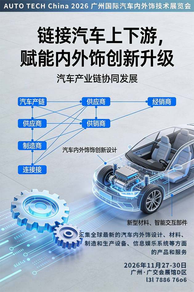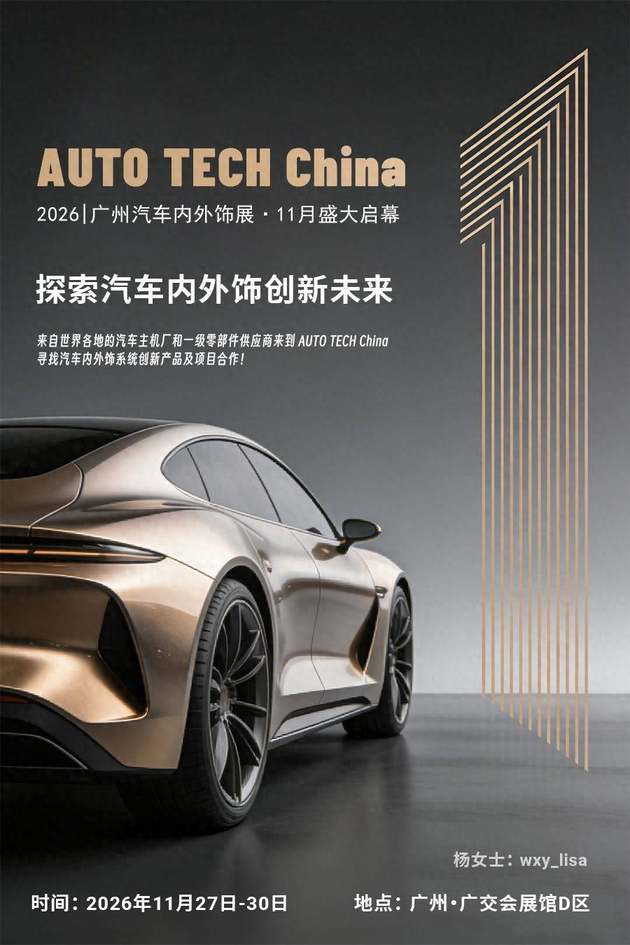 在汽车智能化、电动化浪潮推动下,内外饰已从传统功能性部件,跃升为品牌差异化表达与用户体验升级的核心载体,开启了从“零部件”到“场景系统”的战略转变。作为行业风向标,AUTO TECH China 2026广州国际汽车内外饰技术展览会,将于2026年11月27日-30日在广州·中国进出口商品交易会展馆D区盛大启幕,汇聚全球资源,共探产业新机遇。