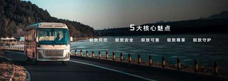 为提供出行途中更好的办公体验,车内更搭载了全新设计的带220V电源的办公桌和折叠助理桌、一键投屏折叠电视、办公位亮度可调阅读灯、冰箱、纳米生态离子织物顶棚等贴心配置。车内饰采用环保材质,禁用物质十项达标率100%,独立循环的过滤PM2.5和空气净化功能,全程呵护乘客出行安全健康。