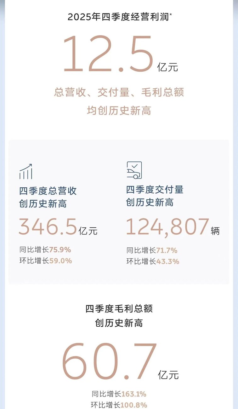 咱不是黑蔚来,Q4交付和毛利率提升是实打实的进步,降本措施也有成效,但单季盈利不等于持续盈利,靠财务调节换来的高光,撑不起长期发展。对比零跑、小米的持续盈利,蔚来这波更像是“临时抱佛脚”,没解决全年亏损的根本问题。