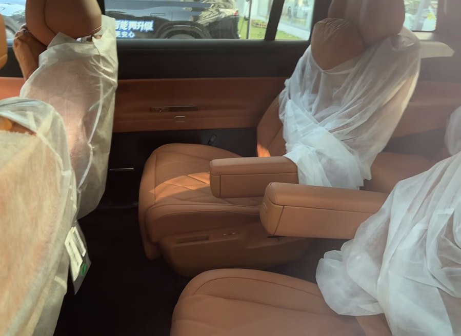 车身尺寸长宽高分别为5207/1997/1810mm,轴距3070mm,与问界M9、理想L9同级。庞大饱满的身躯很有气场,并配备悬浮式车顶、隐藏式门把手、电吸门、21英寸密幅式轮毂等,兼顾豪华感与时尚感,还提供仙踪绿、大漠金、天境蓝、雪域白、远山灰、曜石黑共6款配色可选。而尾部的贯穿式尾灯+发光logo与前脸相呼应,后包围处的扩散器配合不规则尾翼,则继续强调运动感。