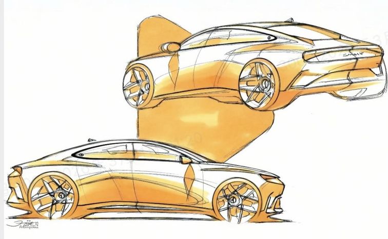 从这台全新车型的手稿中能够看到奔驰CLS的身影,尤其是车尾的“翘臀”非常性感。