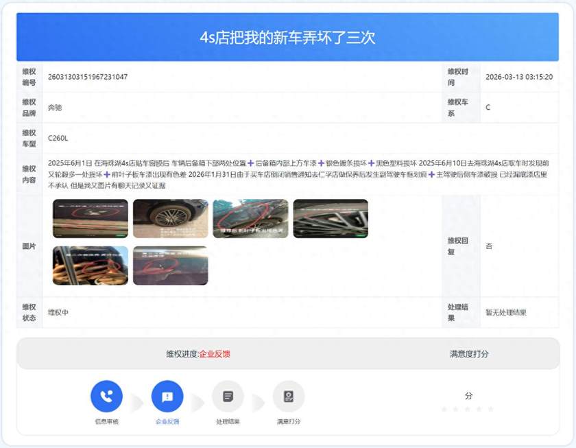 奔驰C新车4S店三次损坏!车主:真的是店大欺客