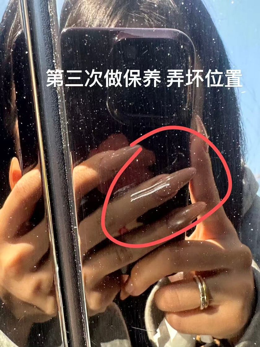 王女士坦言,自己刚把车开到4S店,保安就告知前方车辆排队,直接让她交出车钥匙,后续车辆何时进场保养、保养流程如何推进,自己全程不知情。更让她气愤的是,店内工作人员在保养前,细致拍摄了车辆原有伤痕,哪怕是指甲划出的细微划痕都清晰记录在册,但拍摄的图片中,并无此次新增的两处损伤。