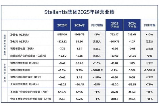 根据Stellantis集团2025年财报,该年度集团净亏损223.32亿欧元,根据汇率,折合成人民币约1806亿元,对于集团亏损的原因,Stellantis集团首席执行官安东尼奥·菲洛萨坦言,集团高估了新能源转型速度,需要以客户需求为中心来重新调整业务,而正是因为业务进行调整,导致Stellantis集团在2025年下半年产生了约222亿欧元的费用,其中大约65亿欧元现金将在未来四年内完成支付。
