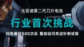 安全始终是动力电池的核心底线,比亚迪第二代刀片电池以远超新国标的测试标准,验证了闪充状态下的极致安全性能,破除用户快充安全焦虑,用硬核测试结果筑牢重新定义电池安全标杆的技术根基。本次第二代刀片电池完成了行业首次闪充循环500次后叠加边闪充边针刺的极限测试,该测试状态相当于模拟车辆行驶30万公里、家用15年的实际使用场景,试验过程中电池无热失控、无冒烟、不起火、不爆炸,表现远超新国标仅要求300次快充循环后的安全测试标准。