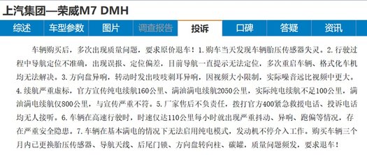 同时,这位车主还控诉了上汽荣威M7 DMH的多项质量问题:购车当天发现车辆胎压传感器失灵;行驶过程中导航定位不准确,出现误报、定位偏差;导航一直提示无法定位,多次重启车辆、格式化车机都无法解决;方向盘异响,方向盘转动时吱吱刺耳异响;车辆在高速行驶时,时速仅到110公里每小时就出现严重抖动、异响、跑偏等情况,存在严重安全隐患;车辆在基本满电的情况下无法启用纯电模式,发动机不停接入工作。有理有据的投诉摆在面前,暴露出荣威的产品与服务仍有很大的改进空间。