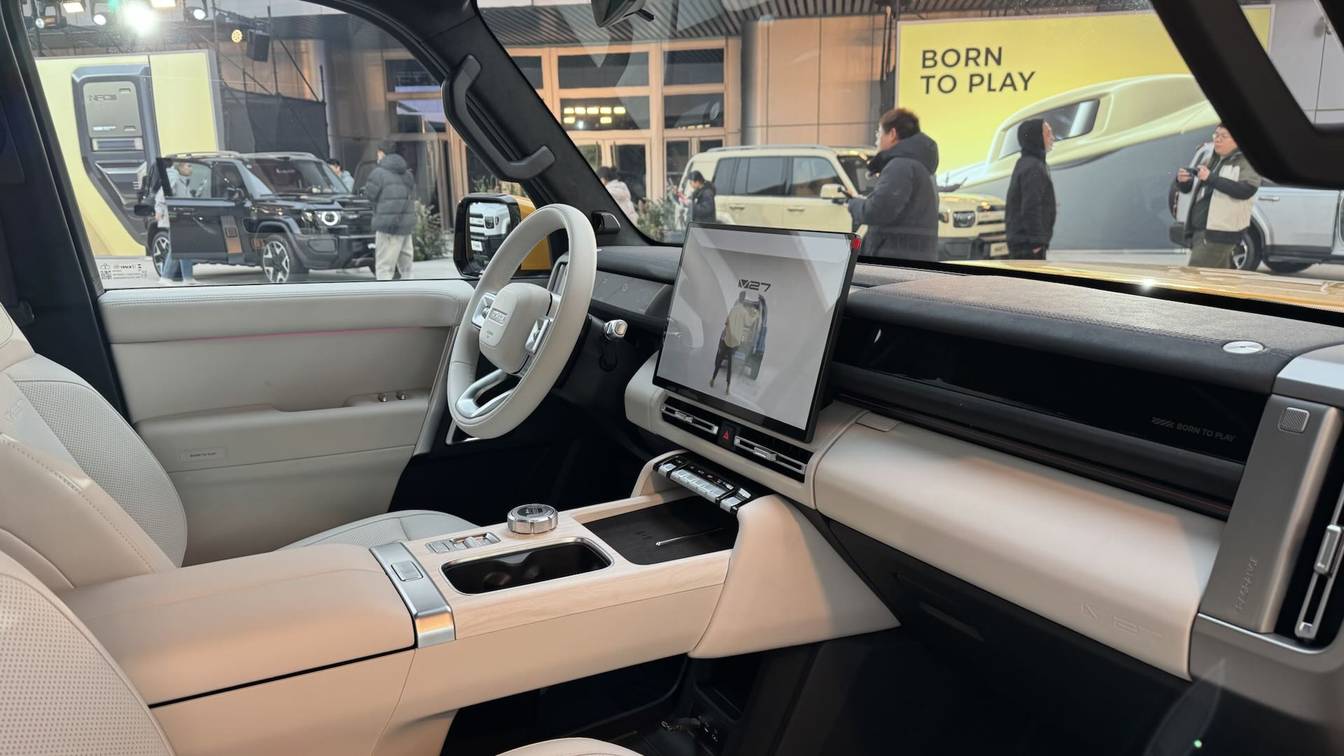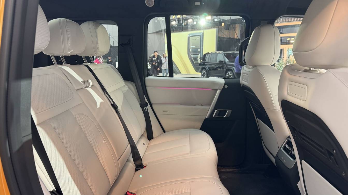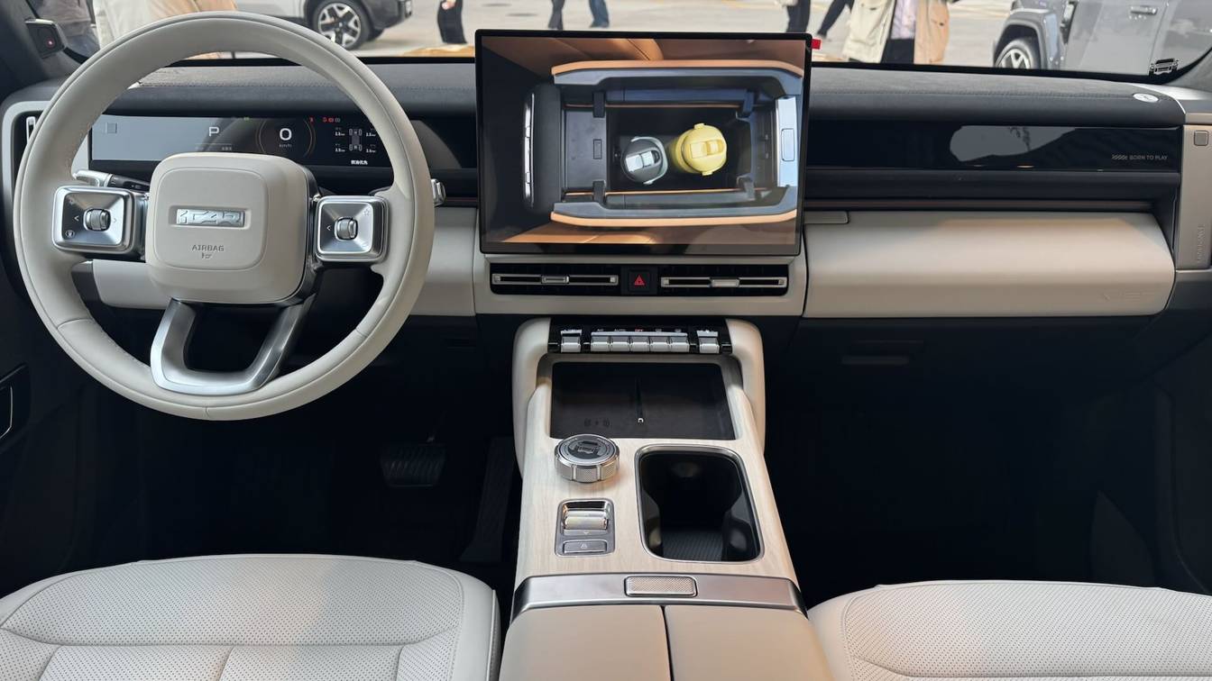 而贵了1.3万元的中配四驱版,主要多了一组150kW前电机,动力提升至335kW、百公里加速5.5秒,轮胎升级到21英寸。这套智能四驱支持坦克掉头、电子限滑等功能,这些对于一款硬派SUV来说是必要的,不会只是花架子。这个版本唯一的问题是智驾依然为猎鹰500。