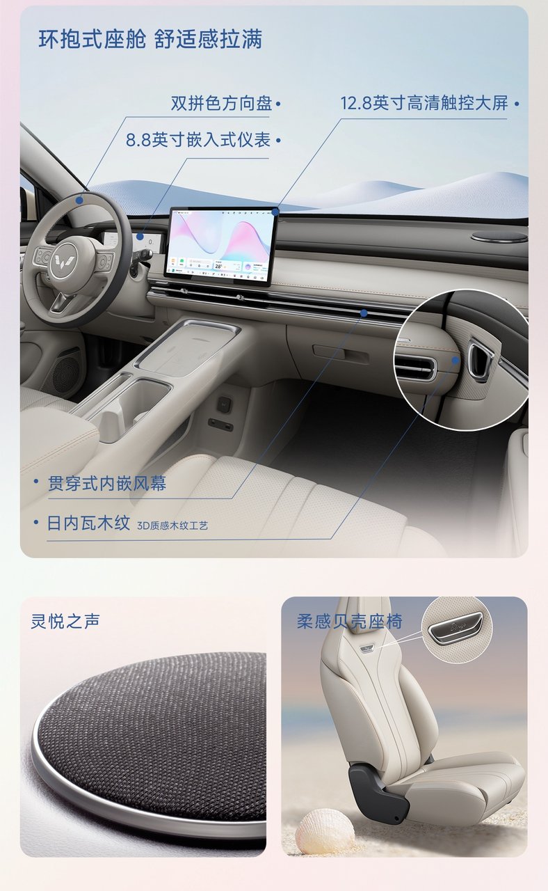 该车的内饰采用“极简主义”设计,通过巧妙的色彩搭配和材质运用,勾勒出开阔通透的视觉空间。木纹纹理逼真,触感温润,提升了座舱的质感。