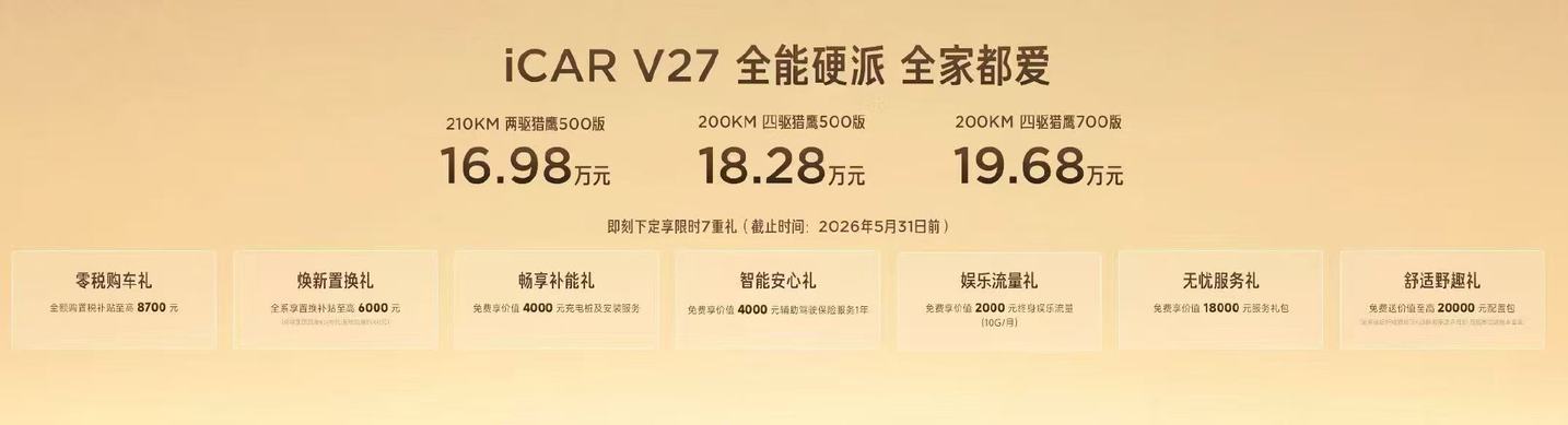 全能硬派全家都爱!iCAR V27上市,售价16.98万元起