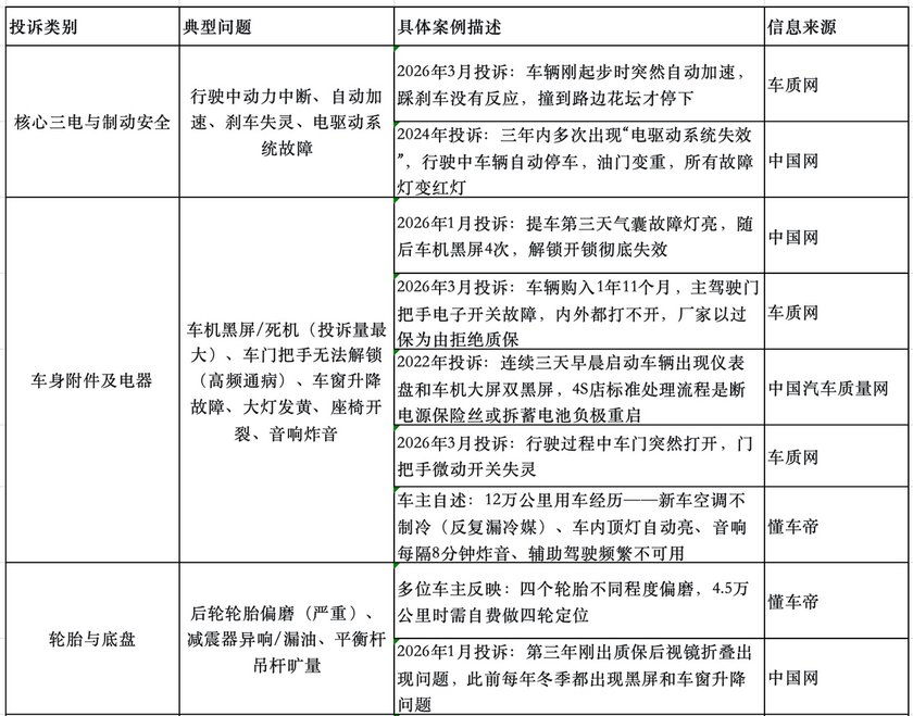 大灯发黄、座椅开裂、后备厢液压杆漏油、轮胎偏磨……这些“小毛病”在投诉中反复出现。虽然单个问题看似不致命,但当它们集中出现在一款车上,反映的是品控体系的系统性问题。
