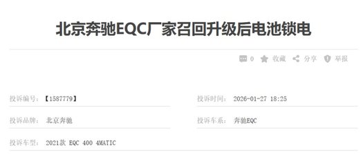 2025年,奔驰以高压电池存在热失控风险为由,启动EQC官方召回,要求车主到店升级电池管理系统,这本该是负责任的整改举措,可升级过后,车主们却发现自己的车辆被悄悄“锁电”。有车主表示,自己的北京奔驰EQC回店升级后,纯电功率显著降低,车辆续航里程也明显减少了约100公里。