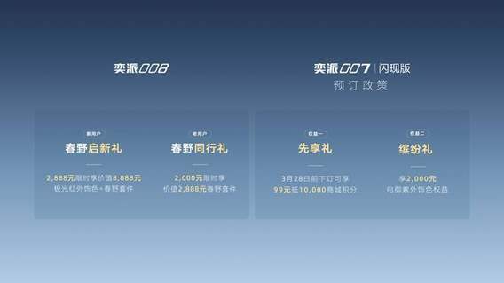 奕派008“极光红”全新车色由东风奕派与用户共创,并携手中国国家地理将阿勒泰红色极光复刻于车身,车漆质感通透且抗刮耐磨。以车顶横杆行李架+固定侧踏板+放电插排为组合的“春野套件”,全场景适配城市露营与户外穿越,解锁更自由的探索生活。为回馈新老用户支持,推出限时购车权益,新用户下订极光红外饰色绑定春野套件限时先享价2888元;老用户可在APP下订春野套件,限时回馈价2000元。此外,奕派008即将全系推送OTA 升级,在娱乐影音、行车安全、车机智能交互等方面,全面优化用车体验,为用户带来更安全、更好玩的用车体验。