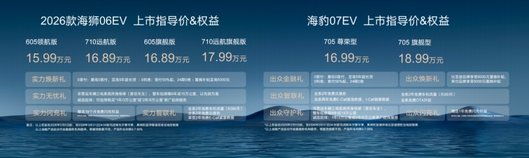 两款车,两种性格。海狮06EV是那个能陪你上山下海的靠谱伙伴,15.99万起的价格,把全能型SUV的门槛又拉低了一截。海豹07EV则是那个让你每天通勤都想多绕两公里路的精致座驾,16.99万起,给足了面子和里子。