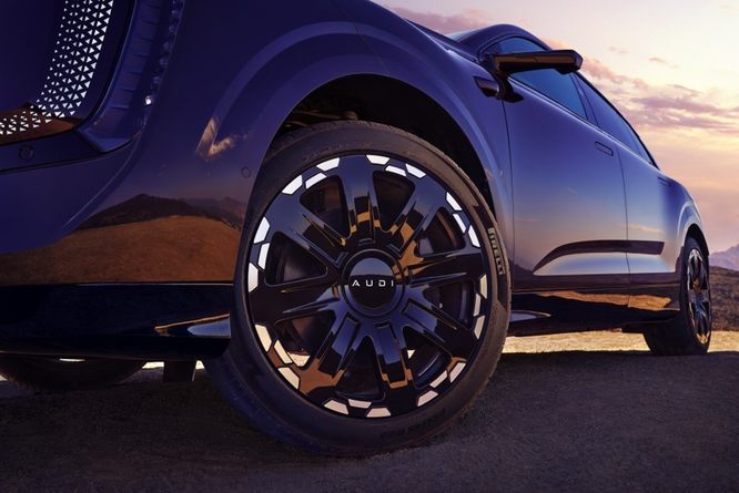 原创设计是豪华品牌的立身之本,更是奥迪在电动化转型中,坚守品牌百年基因、打造差异化豪华体验的核心原则。奥迪 E7X 承袭RSQ未来主义美学,以全新一代奥迪电动设计语言重构豪华与力量的感官张力。新车以3,060mm超长轴距搭配越级大五座布局,打造宽绰奢适的座舱空间;宽大凌厉的前脸,搭配标志性的“环形灯面”设计与百万级像素DLP高清数字投影大灯,既铸就独树一帜的高辨识度,更可通过多元场景化智能交互,全方位提升行车安全。奥迪全新专属轮毂造型搭配宽体外扩前后轮毂,静立间气场尽显。