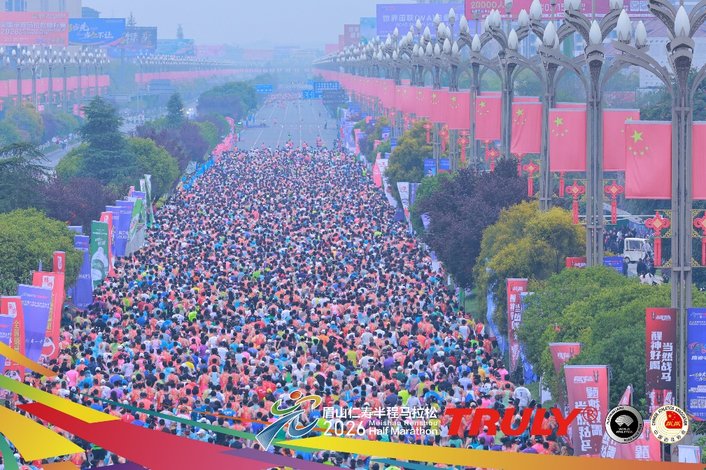 眉山仁寿半程马拉松自2017年创办以来,凭借高标准办赛理念快速崛起,2025年正式加冕世界田联白金标,成为中国首个获此认证的半程马拉松赛事。今年赛事继续升级,肩负全国半程马拉松锦标赛唯一承办地的重磅身份。“仁马”赛道经过8次优化,直道占比高达99.5%,坡度变化不超过1米,出发道宽18米,冲刺道长1200米,全程覆盖最短路径“蓝线”。宽阔平坦的赛道和专业的赛事组织为选手竞赛创造了极佳的条件,多次诞生国内半马赛事最快纪录,被誉为“中国最快赛道”。这条“为中国速度而生”的赛道,曾见证中国男女半马最好成绩的诞生,是跑者心中通往PB(个人最好成绩)的“逐梦之路”。