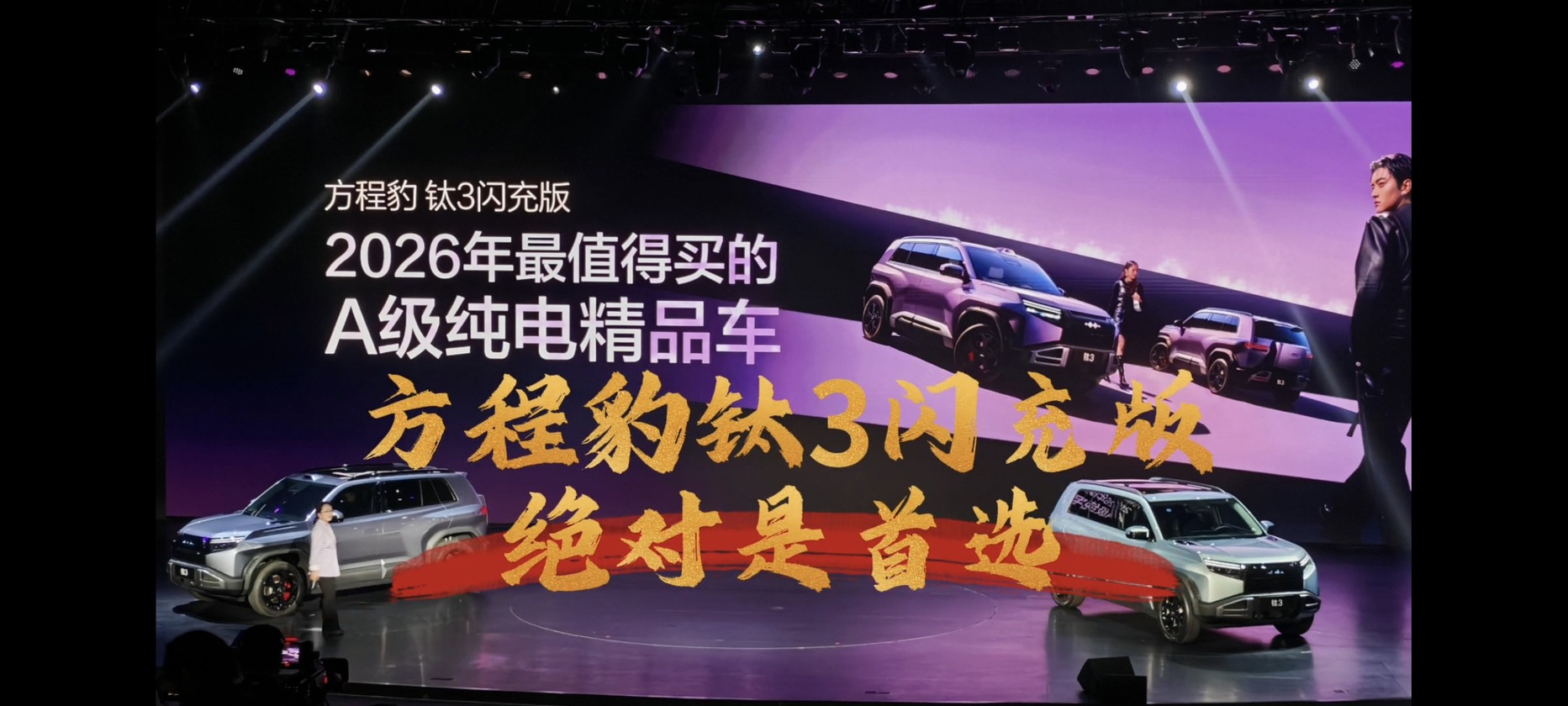 方程豹钛3闪充版15.38万起上市,闪充黑科技+十大硬核配置拉满,颜值能打、家用越野全能。