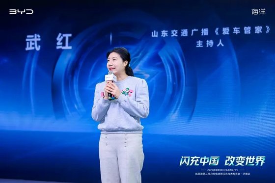 在媒体证言环节,受邀到场的媒体代表山东交通广播爱车管家节目主持人武红老师登台,对2026款海狮06EV与海豹07EV的产品实力给予了高度认可。武红老师从专业媒体视角与真实用户驾驶场景出发,深度解读了两款车型在海洋美学设计、智能科技配置、驾控质感、补能效率等多个维度的核心优势,引发了现场嘉宾的广泛共鸣。媒体代表同时表示,随着“闪充中国改变世界”技术理念的持续落地,比亚迪通过搭载第二代刀片电池与闪充技术的产品矩阵,正在从根本上解决用户纯电出行的补能焦虑,持续提升用户出行效率,推动新能源行业高质量发展。