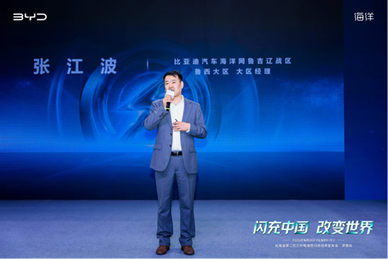 新车亮相环节将现场氛围推向首个高潮,在全场嘉宾的热切期待中,主持人介绍到场嘉宾后,邀请比亚迪海洋网鲁吉辽战区张江波先生登台致辞。向莅临现场的所有嘉宾、媒体朋友与用户致以最诚挚的感谢。他强调,2026年3月比亚迪正式发布了具有行业里程碑意义的第二代刀片电池与全域闪充技术,再度颠覆了新能源汽车补能效率的行业标准。海洋网始终秉持“技术为王,创新为本”的核心理念,以技术突破为锚点,引领纯电出行全面迈入“全场景闪充无忧”的全新纪元,让每一位用户都能以更高效、更便捷的方式,解锁新能源出行的无限可能。