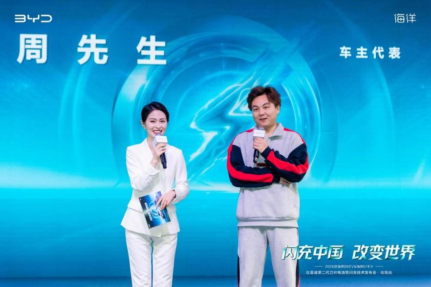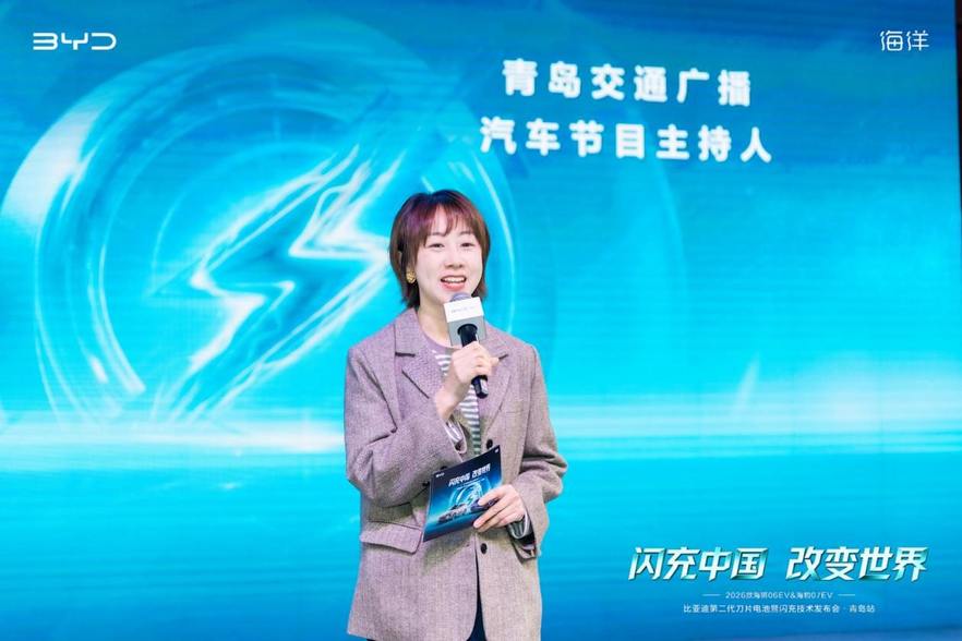 随后,来自青岛交通广播汽车节目主持人刘怡对海狮06EV与海豹07EV的产品亮点表示认可,通过驾驶用户的角度来讲述车型的亮点,表达海洋美学设计、智能科技配置到驾控体验等多个维度的优势,引起了现场的广泛关注。刘怡女士还表示,随着“闪充中国 改变世界”技术理念的持续推进,通过搭载第二代刀片电池与闪充技术的产品,不断提高用户的出行效率。
