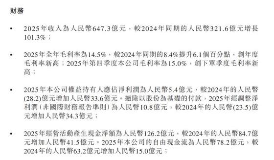 3月16日,零跑汽车公布2025年业绩。财报显示,2025年零跑实现营收647.3亿元,较2024年的321.6亿元增长101.3%;全年净利润5.4亿元,首次实现年度盈利,而2024年同期净亏损28.2亿元,成功实现扭亏为盈。
