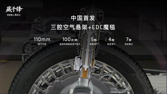 岚图泰山Ultra版被誉为中国汽车市场“9系旗舰SUV”的集大成者,除了搭载896线双光路图像级激光雷达,拥有五大安全冗余外,岚图泰山Ultra版的底盘硬件及舒适性配置同样达到行业顶级水准。底盘硬件方面,岚图泰山Ultra版采用前双叉臂+后五连杆底盘结构,前后副车架、摆臂、转向节、空悬支架等核心部件采用航空级铝合金,在保证结构强度的同时兼顾轻量化及耐腐蚀性。与此同时,岚图泰山Ultra版搭载中国首发三腔空气悬架,配合EDC魔毯底盘及双向16°后轮独立转向技术,带来百万级驾控稳定性。