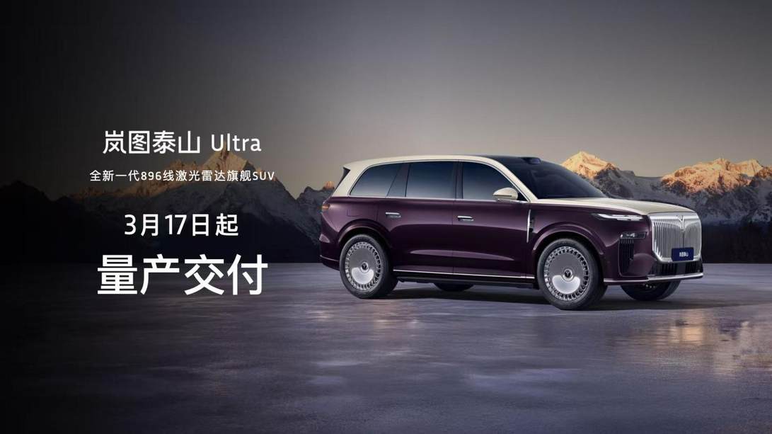 【2026年3月17日】岚图汽车正式迎来“全新一代896线激光雷达旗舰SUV”——岚图泰山Ultra的量产交付及泰山黑武士的重磅上市。泰山Ultra版售价45.99万元,黑武士版售价50.99万元,为高端用户带来专属定制的旗舰出行选择。作为首款搭载全球最高规格“896线双光路图像级激光雷达”的旗舰SUV,岚图泰山将“最强大脑”与“最强躯体”完美融合,成为行业内唯一集“华为顶级智驾、同级唯一三腔空悬与百万级豪华配置”于一身的巅峰之作。本次上市不仅将全面呈现岚图泰山的硬核实力,更确立了中国汽车产业在智能化下半场竞争的绝对分水岭,铸就了行业发展进程中不可磨灭的里程碑。