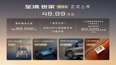 售48.99万,首搭900V+6C超快充别克至境世家纯电版上市