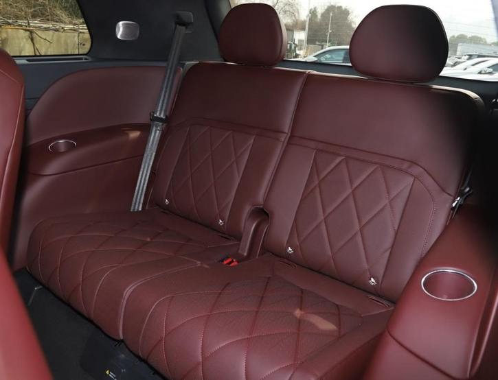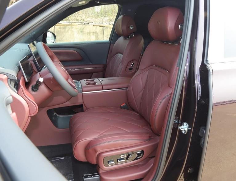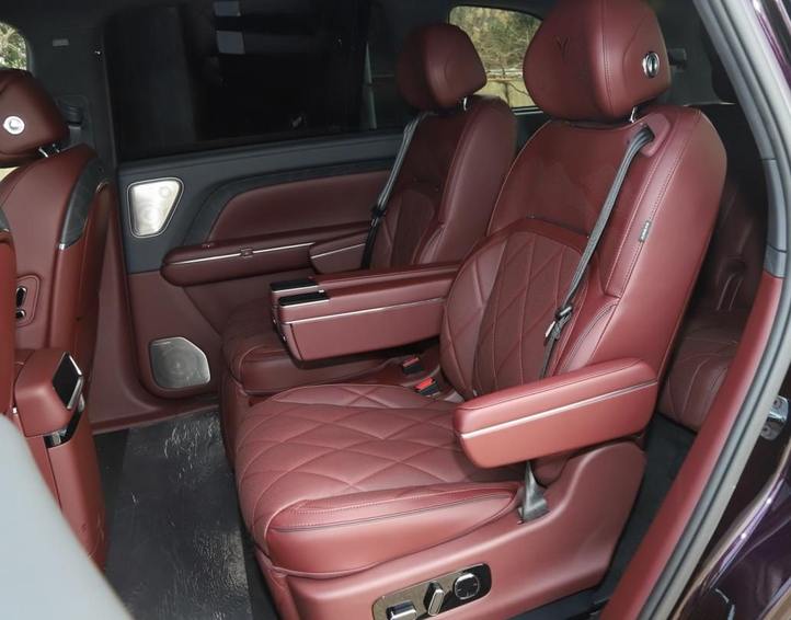 仿皮材质座椅触感舒适,有丰富的菱形缝线,填充物厚实。座椅功能强大,除了常规的多向电动调节、通风、加热与按摩,还有4向腰撑调节,卷曲式电动腿托。车内提供256色氛围灯,中央扶手箱内有13L车载冰箱,支持上方和后方双开门。提供32喇叭音响系统,包括8个头枕喇叭和后排专属喇叭,最大功放功率达2300W。