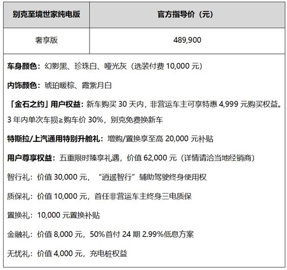 48.99万元起!别克至境世家纯电版上市,首创金石之约权益