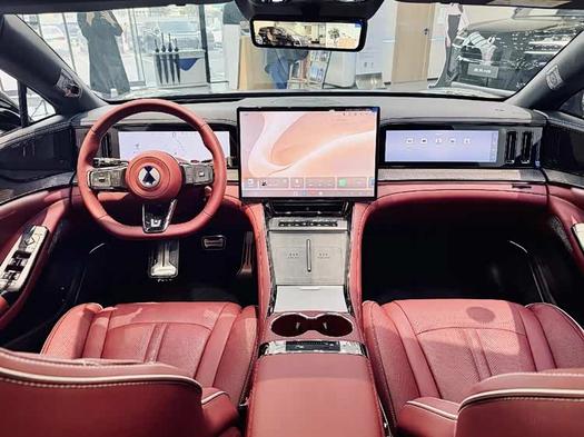 外观上,猎装轿跑的底子没变,溜背造型、无框车门依然在线,这次还新加了晶澜灰、峡湾绿、极光紫几个骚气的颜色 。最明显的变化是车顶:激光雷达被集成到了前缘,像个“瞭望塔”,看着比以前协调多了 。坐进车里,三联屏(17.3英寸中控+13.2英寸仪表+13.2英寸副驾屏)依然是视觉重点,但方向盘换成了新的三辐式,挡把也改成了电子怀挡 。这怀挡的好处是,中控台那块儿干净了,储物空间更多,用起来也顺手。