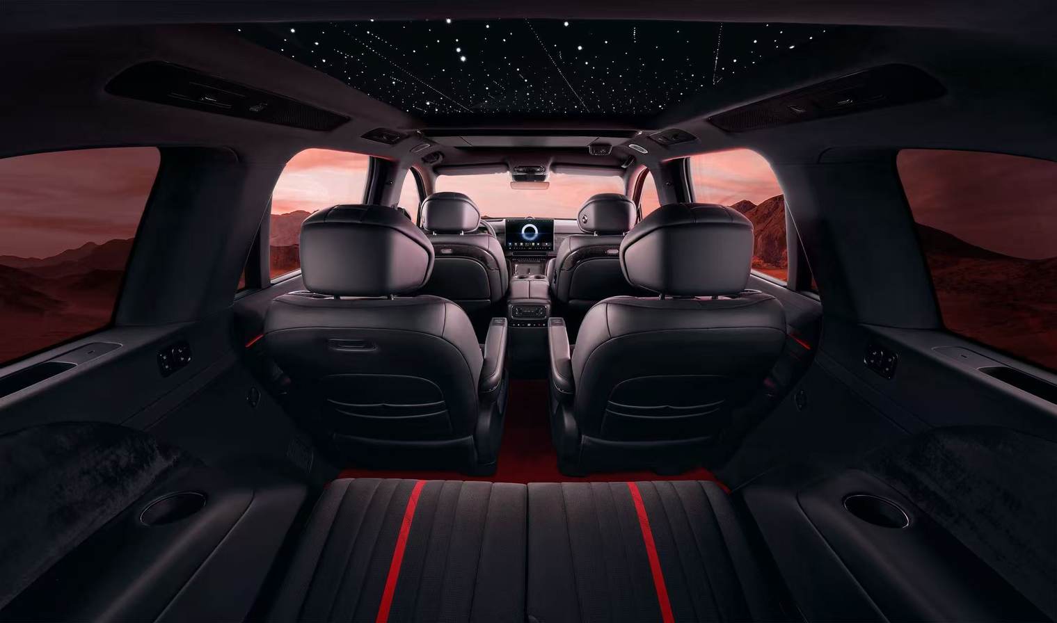 最绝的是那个星河天幕星空顶,598颗灯珠密布穹顶,三种模式切换,关上车门,真的有一种“穹顶之下,坐拥宇宙”的静谧感。