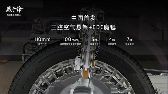 岚图泰山Ultra版被誉为中国汽车市场“9系旗舰SUV”的集大成者,除了搭载896线双光路图像级激光雷达,拥有五大安全冗余外,岚图泰山Ultra版的底盘硬件及舒适性配置同样达到行业顶级水准。底盘硬件方面,岚图泰山Ultra版采用前双叉臂+后五连杆底盘结构,前后副车架、摆臂、转向节、空悬支架等核心部件采用航空级铝合金,在保证结构强度的同时兼顾轻量化及耐腐蚀性。与此同时,岚图泰山Ultra版搭载中国首发三腔空气悬架,配合EDC魔毯底盘及双向16°后轮独立转向技术,带来百万级驾控稳定性。