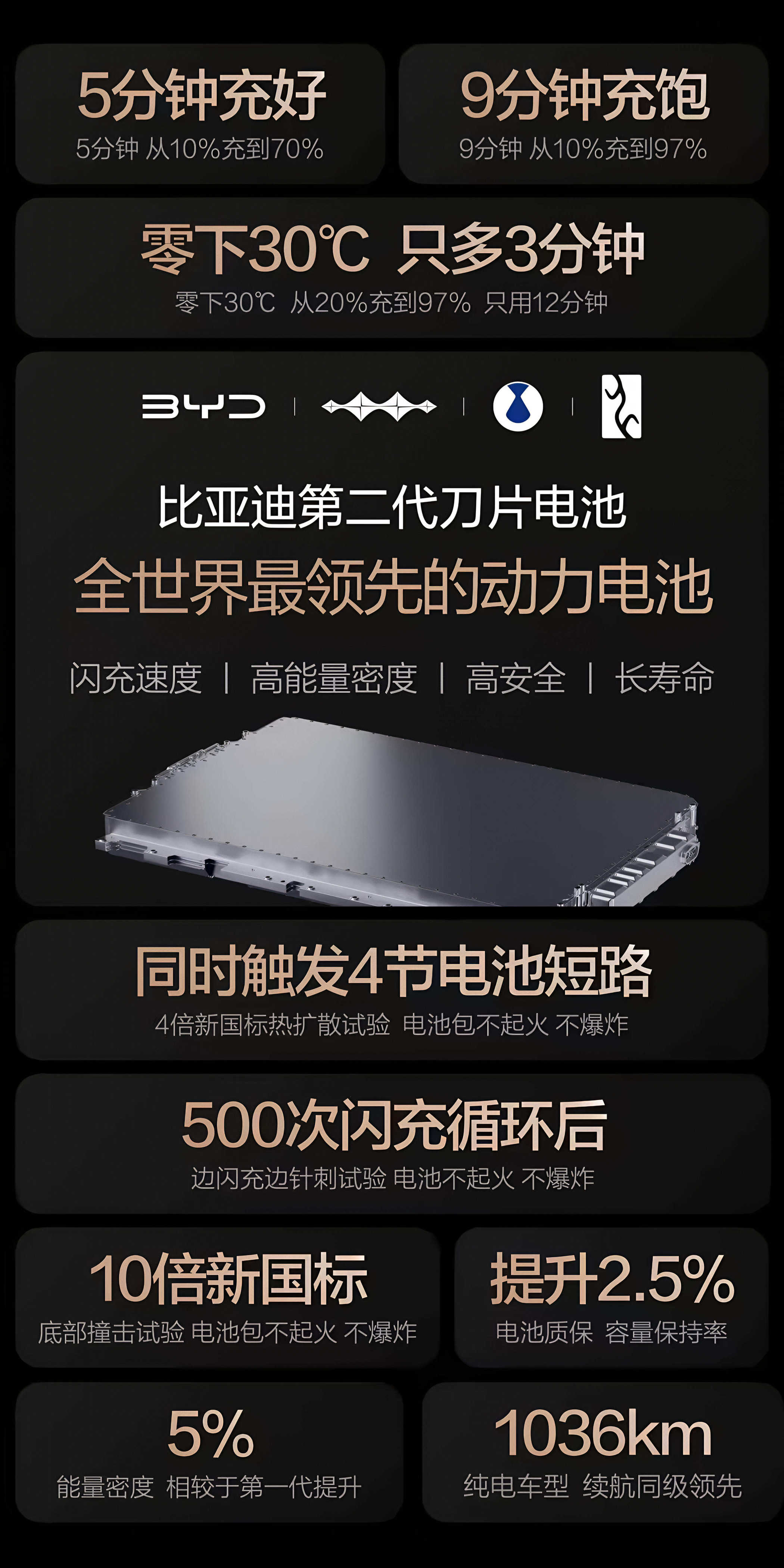 2026年3月5日,比亚迪正式发布第二代刀片电池,凭借“常温5分钟充好、9分钟充饱,零下30度低温仅多3分钟”的闪充表现,硬核破局行业痛点,一举攻克行业“充电慢”“低温充电难”两大痛点,更以高能量密度、长寿命、高安全的全能优势,重新定义全球领先动力电池标准。针对用户普遍关注的“闪充是否影响电池寿命与安全”的核心疑虑,比亚迪第二代刀片电池以创新技术、严苛测试与升级质保给出硬核答案,实现闪充与耐用、安全的完美兼得。