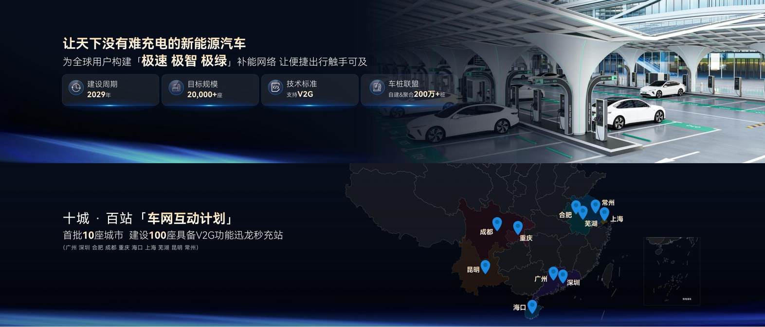 奇瑞同步启动了“十城·百站车网互动计划”,首批覆盖广州、深圳、合肥、上海等10座城市,计划建设100座具备V2G功能的迅龙秒充站。至2029年,奇瑞目标建成20000+座支持V2G的迅龙秒充站,构建开放、兼容的智能补能生态 。