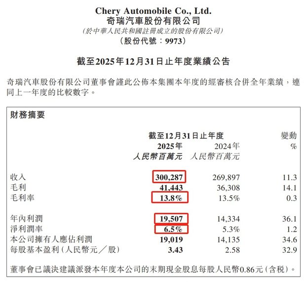技术突破背后是坚实的投入与市场支撑。活动当天公布的财报显示,2025年奇瑞自主乘用车销量263.14万辆,新能源销量82.65万辆、同比大增72.5%,总营收突破3000亿元,研发投入147.15亿元、同比增长39.6%。海外出口129.44万辆,连续23年位居中国品牌乘用车出口第一,新能源出口同比增长超500%。