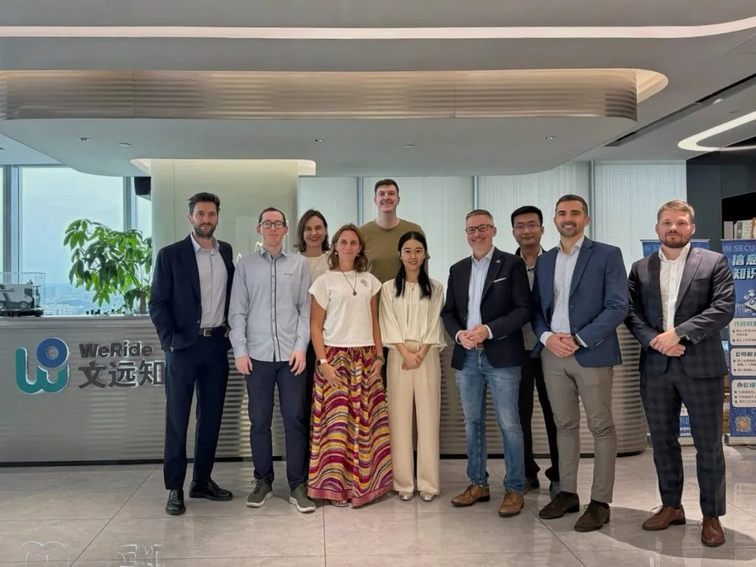 文远知行CFO兼国际负责人李璇,与斯洛伐克交通部、斯洛伐克投资&区域发展与信息化部及DiusAI代表一行在文远知行广州总部合影