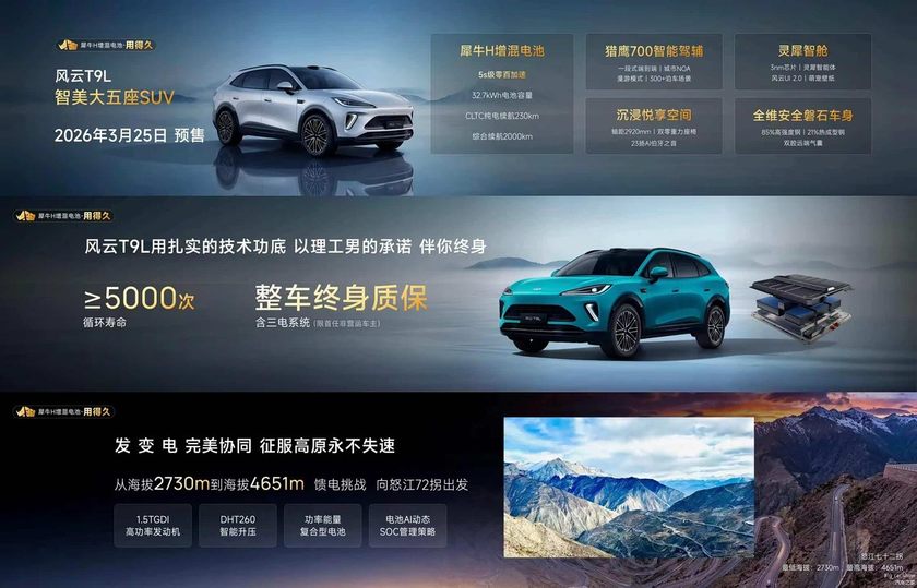 二是,李学用在介绍犀牛电池后续搭载的新车计划时,风云T9L上的整车终身质保,含三电系统(限首任非营运车主)。