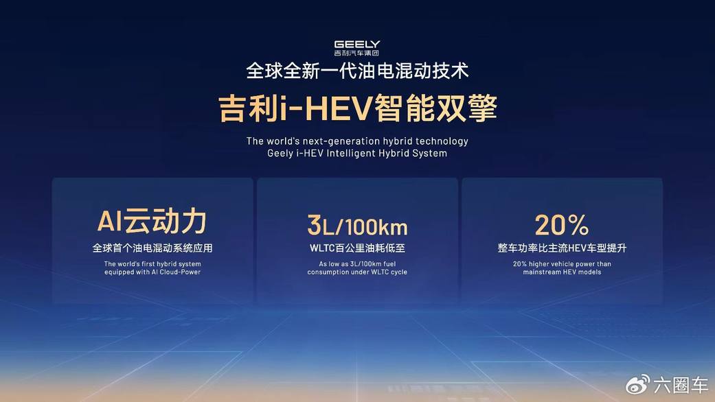 雷神AI电混2.0搭载全球最高热效率47.26%的量产电混发动机,并通过动力域智能体“星睿AI云动力2.0”实现动力系统的智能化升级。吉利还将在2026年上半年推出全球新一代油电混动技术 i-HEV智能双擎,可将HEV百公里油耗降至3L,整车功率较主流HEV提升至少20%。