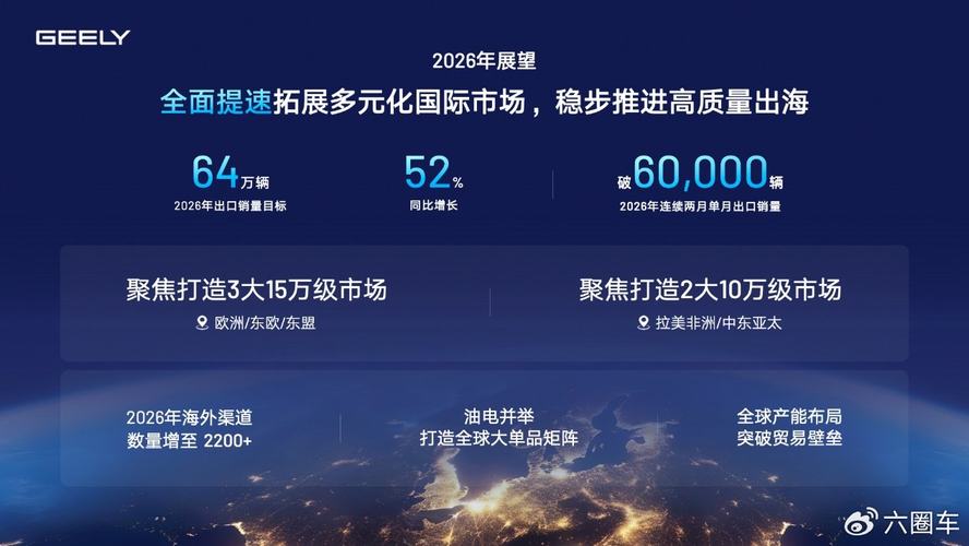 通过产品出海、技术出海与产业体系出海的协同推进,吉利汽车正加速构建全球化产业布局。2026年,吉利汽车1-2月连续两个月单月出口销量超过6万辆,同比大涨129%,国际化业务驶入增长快车道。