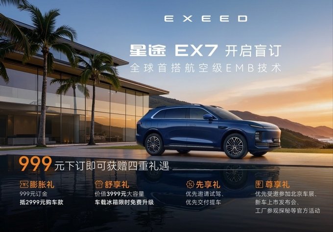 星途EX7开启盲订,全球首搭航空级EMB技术