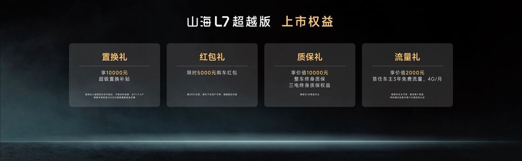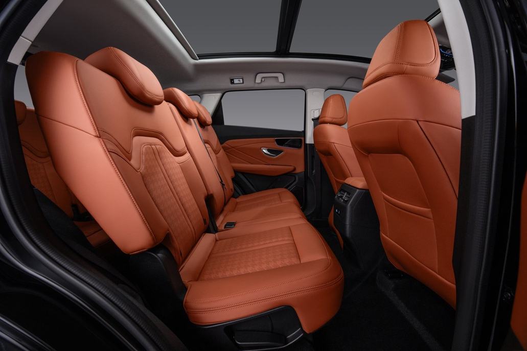 定位5+2座精品电混SUV,车身宽1900mm,轴距2745mm,5/7座灵活切换,12种座椅组合;二排腿部空间960mm,后备箱最大容积1688L;二排靠背25°-41°可调,可选装-6℃~50℃智能冷暖冰箱。