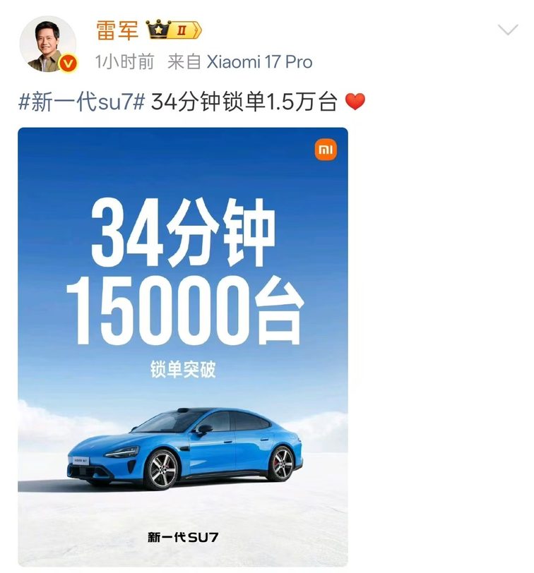 2026年3月19日晚,小米汽车召开新一代SU7发布会。这场发布会可谓众星云集,发布会现场比亚迪集团董事长兼总裁王传福、理想汽车CEO李想、小鹏汽车董事长、CEO何小鹏等都有亮相。小米创办人、董事长兼CEO雷军对于他们的到来多次表示感谢。