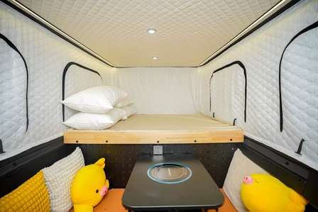 这款联名车型的硬核实力,藏在三大核心价值里。够野是底气,搭载 2.0T 蓝鲸大增程 + 前后双电机,最大功率 260kW、峰值扭矩 555N・m,搭配三把锁 + 33 寸越野胎,动力与通过性拉满,翻山越岭说走就走;够舒适是精髓,创新背驼房车形态,航空级全铝房箱可升可降,不升箱时 2.2 米车高畅行地库、日常通勤无压力,升箱后秒变 “移动小家”,额头床、卡座床、淋浴套装、100L 清水箱一应俱全,露营居住体验直接拉满;够来电是惊喜,43.47kWh 宁德时代大电池带来 900km 综合续航,30kW 超级外放电 + 238 度累计电量,堪比移动能源站,户外煮茶、烧烤、用电设备全满足,彻底告别里程与用电焦虑。