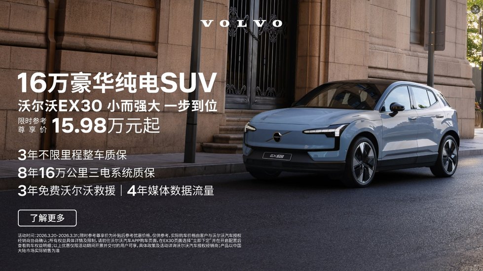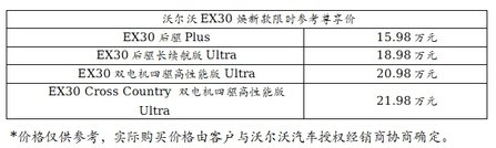 15.98万元起,豪华纯电SUV沃尔沃EX30焕新款上市
