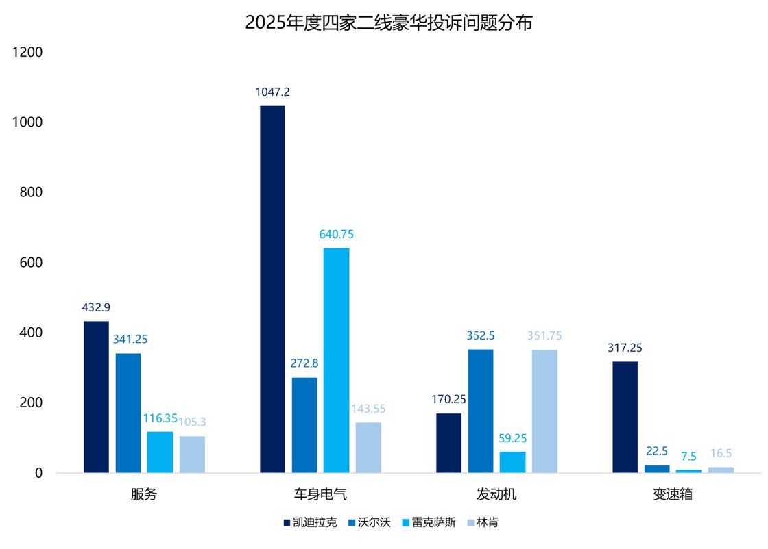 总的来说,2025年凯迪拉克、沃尔沃、雷克萨斯、林肯这四家二线豪华品牌的畅销车型因保有量高成为投诉的“重灾区”,服务不到位、核心部件及车身电气故障是普遍短板。在车市竞争白热化的背景下,这些问题不仅影响消费者体验,更关系到二线豪华品牌的生存与突围,也为各品牌后续的品控升级与服务优化指明了方向。