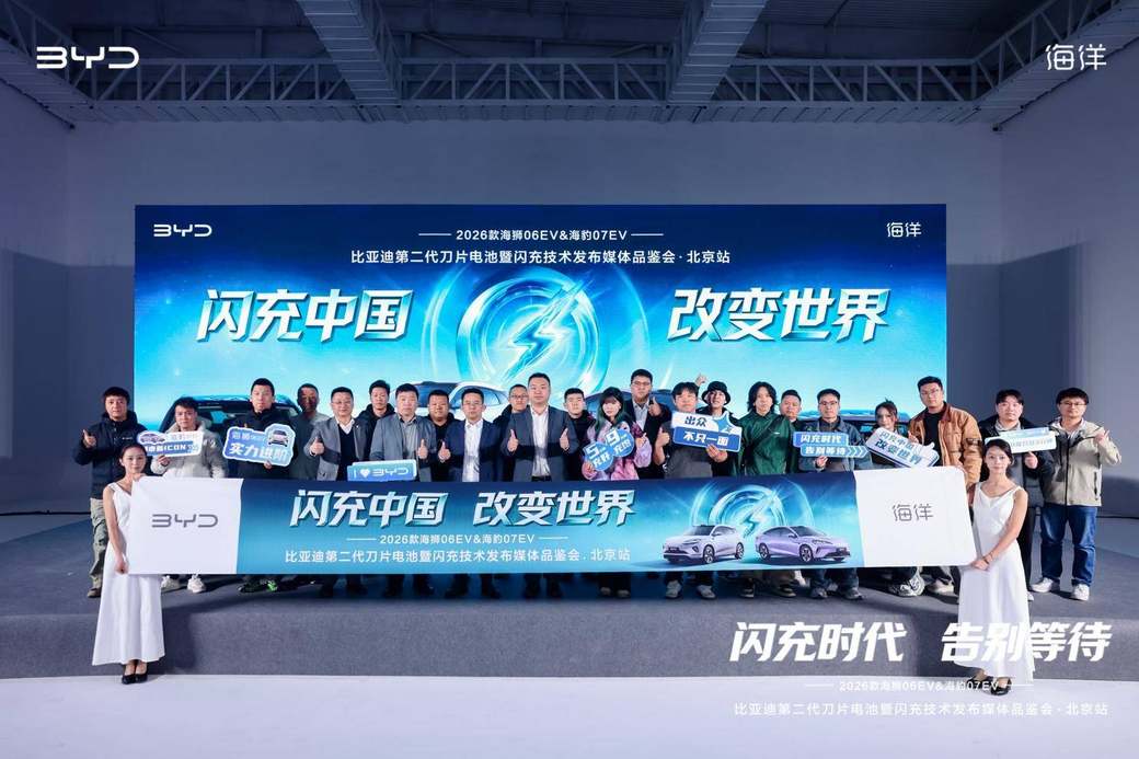 2026年3月19日,“闪充中国 改变世界——2026款海狮06EV&海豹07EV比亚迪第二代刀片电池暨闪充技术发布会・北京站”圆满举行。比亚迪海洋网京津冀战区北京大区领导与行业媒体代表齐聚,共同见证两款重磅车型搭载第二代刀片电池与兆瓦闪充核心技术登陆北京市场。这标志着比亚迪海洋网以技术革新为引擎,引领新能源出行正式迈入“闪充新时代”。
